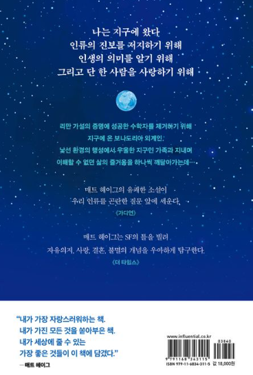 또한 매트 헤이그 특유의 섬세함이 느껴졌습니다. 인간의 단점만을 지적하는 것이 아니라, 불완전하기 때문에 더 소중한 감정들을 보여주는 방식이 따뜻하게 다가왔습니다. 완벽하지 않기 때문에 사랑하고, 실수하며 배우고, 그 과정에서 상처받고 또 성장하는 존재가 바로 인간이라는 메시지가 잔잔하게 전해졌습니다.