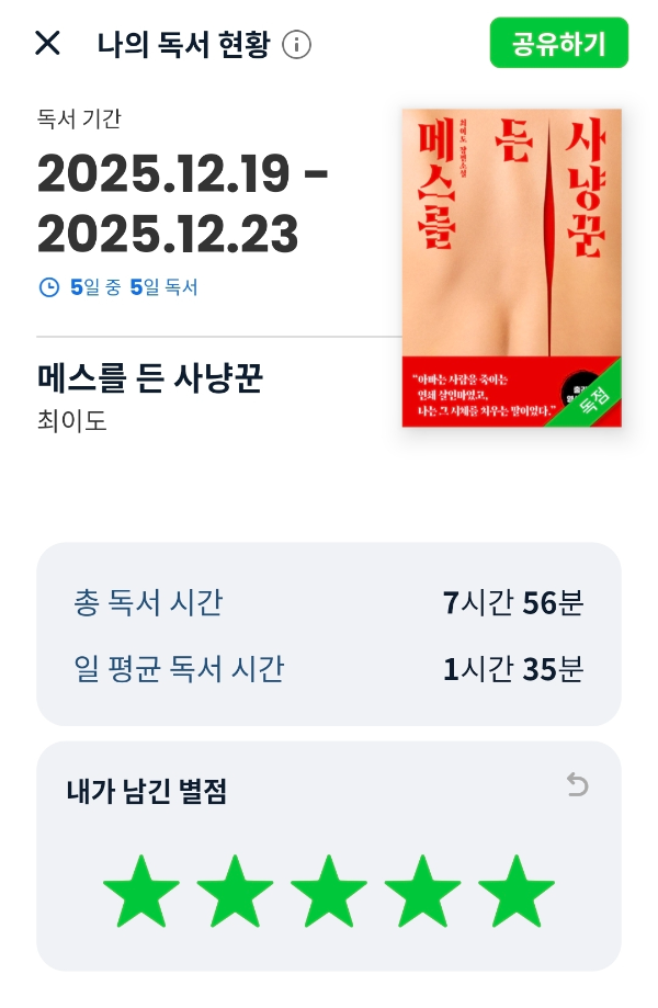 최이도의 소설 《메스를 든 사냥꾼》은 제목에서부터 강렬한 인상을 주는 작품입니다. 평소 스릴러 장르를 좋아하는 독자라면 자연스럽게 시선이 갈 수밖에 없는 제목이고, 저 역시 그 호기심에서 오디오북으로 접하게 되었습니다. 결론부터 말하자면 기대 이상으로 몰입감이 높았고, 짧은 이동 시간이나 자투리 시간을 활용해 듣기에도 잘 어울리는 소설이었습니다.