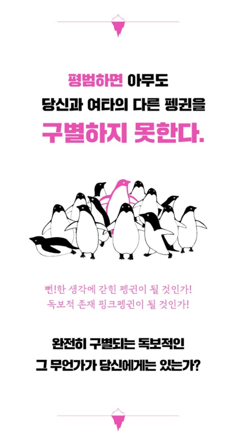 즉, 차별화되지 못한 제품이나 서비스는 아무리 품질이 좋아도 소비자의 기억에 남지 않습니다. 그래서 우리는 회색 펭귄들 사이에서 선명하게 눈에 뛰는 '핑크펭귄'이 되어야 하는 것입니다.