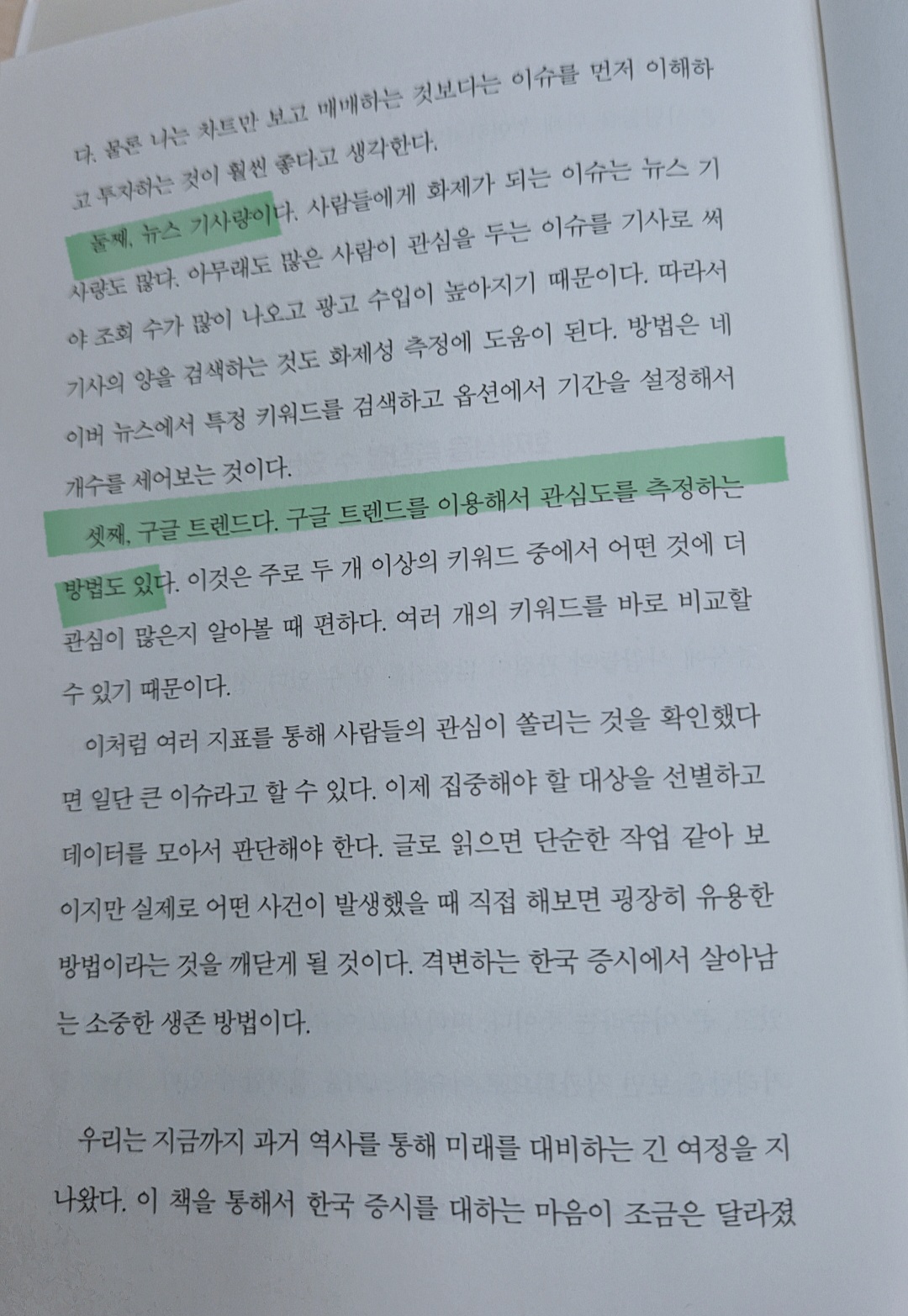 이 책은 초보자도 편하게 읽기에 좋은 경제 관련 도서입니다. 단순한 주식 공부가 아니라 사건을 읽는 법을 알려주는 책입니다. 요즘처럼 뉴스 이슈 주식이 많은 시장에서 실질적 가이드를 제시합니다. 그리고 마지막 부분에 중요한 내용이 있어서 밑줄을 그어봤습니다.